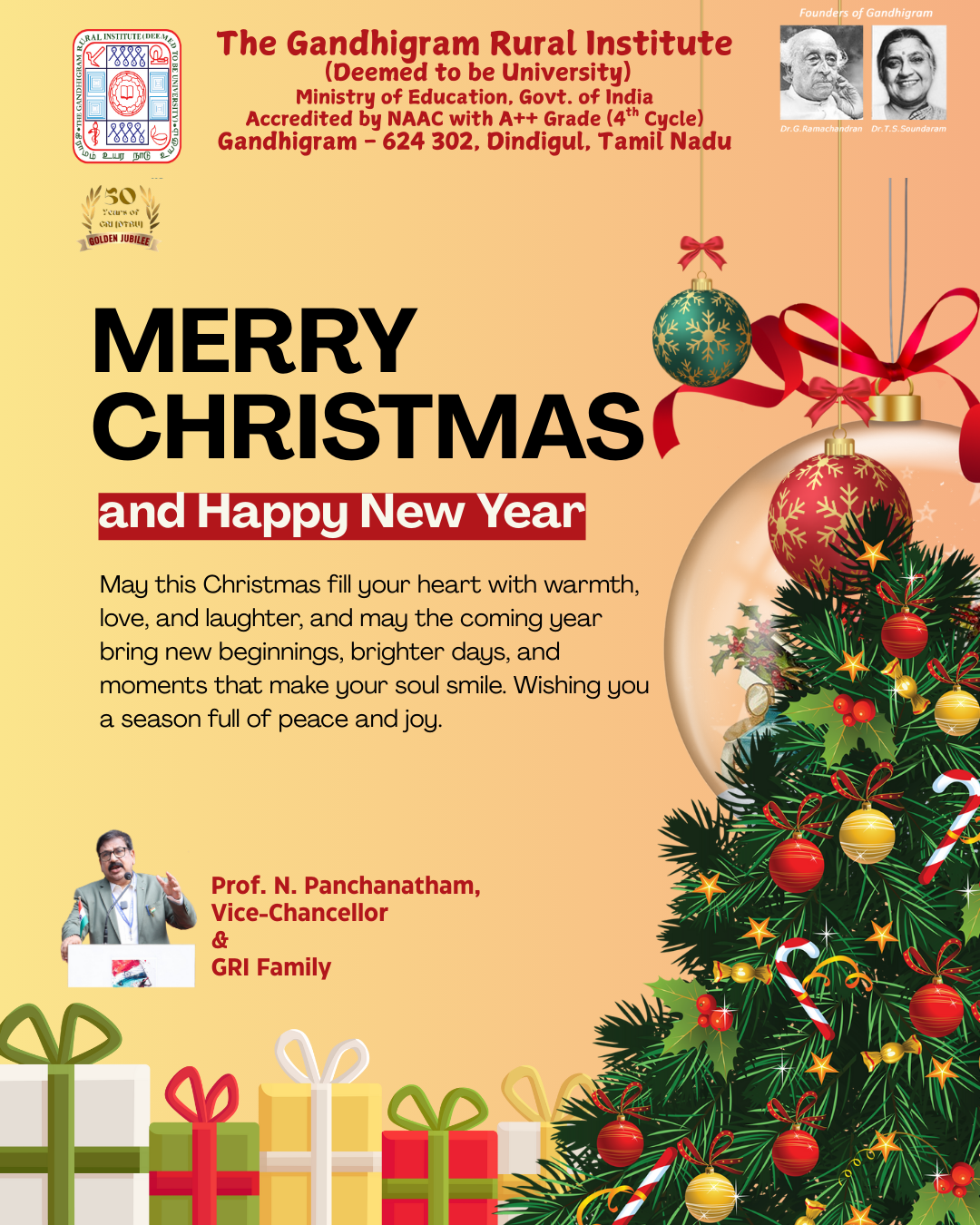 Dr. N. Panchanatham, Vice–Chancellor delivered an Inaugural Address in the Srinivasa Ramanujan's 138th Birthday Celebration (National Mathematics Day) organized by the Department of Mathematics at GRI – DTBU, Gandhigram on 19.12.2025
